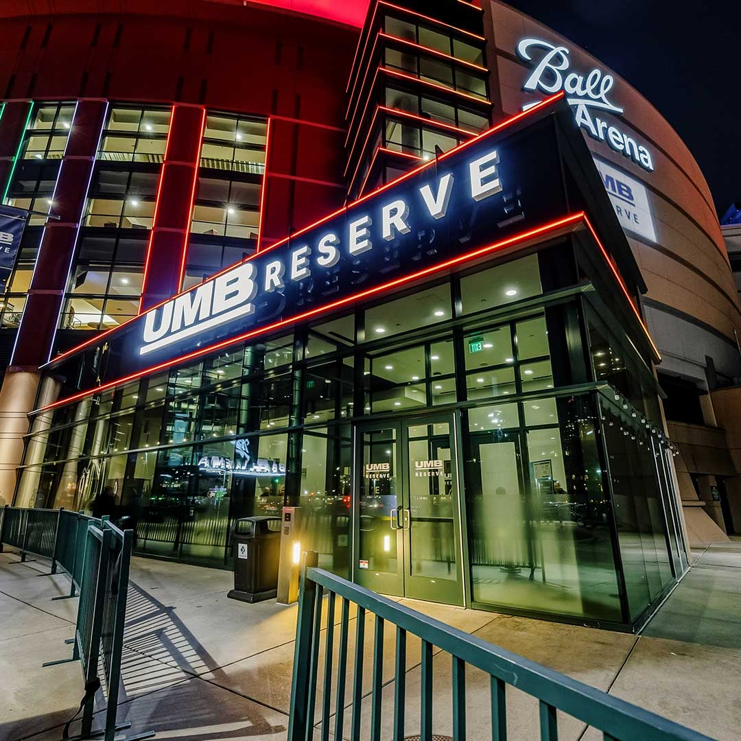 UMB Reserve itself is located on Ball Arena’s event level. The private entrance is located on the southeast side of Ball Arena, nearest to 11th Street and Chopper Circle.